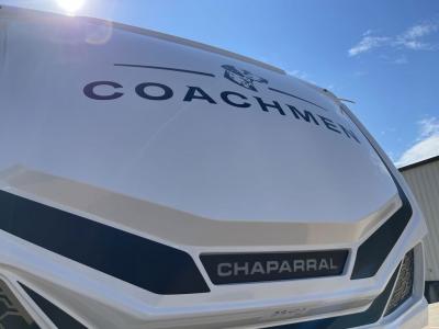 Each Chaparral mid-profile fifth wheel by Coachmen is designed with residential features, loads of storage space, and roomy bedroom suites to make you feel right at home. The durable construction means you can enjoy your RV for years to come. There's 6X double Azdel aluminum cage sidewall system, Weather Shield+ technology, and Tri-Tex powder coated frame technology that will help extend your camping season. Each model includes a Winegard Air 360+ HDTV/radio dome antenna to help keep you connected as you camp, slow rise blackout roller night shades, a new 16 cu. ft. side-by-side stainless glass 12V refrigerator, and a modern electric fireplace to make your space cozy. There is also a large transom window in the kitchen, a modern high-rise faucet, LED motion sensor lights in the bathroom, plus a full-size shower with glass doors and a seat. Now that's what I call luxury! Choose a Chaparral fifth wheel today!