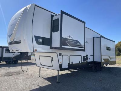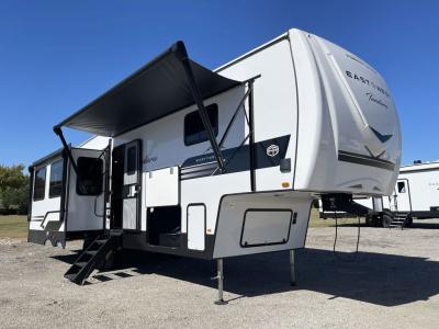 Sleeps 4 Slides 3 Length 35 ft Ext Width 8 ft Ext Height 13 ft 1 in Hitch Weight 2180 lbs Dry Weight 10864 lbs Cargo Capacity 3316 lbs Fresh Water Capacity 64 gals Grey Water Capacity 88 gals Black Water Capacity 44 gals Furnace BTU 35000 btu Available Beds King Refrigerator Type 12V Refrigerator Size 16 cu ft Cooktop Burners 4 Number of Awnings 2 LP Tank Capacity 30 lbs Water Heater Type On Demand Tankless AC BTU 27000 btu TV Info LR 50" TV Awning Info 10' 6" and 16' Power w/LED Lights Axle Count 2 Washer/Dryer Available Yes Number of LP Tanks 2 Shower Type Standard Electrical Service 50 amp Similar Fifth Wheel Floorplans