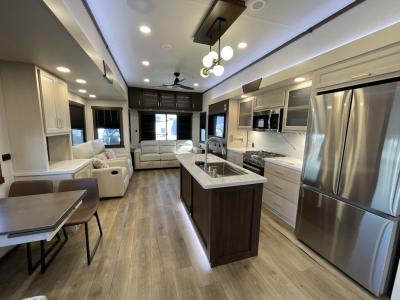 The 101" wide body frame will provide you with more space to stretch out and relax, and the "True" gelcoat exterior is the best of the best in exteriors! Each model also includes Road Warrior suspension for better handling, and the Gen 3 hydraulic leveling system will have you set up in no-time. Inside, you'll enjoy vinyl floor covering in the kitchen and living area, easy to clean, 12V motion lighting in the closet in the bedroom, plus many more comforts.