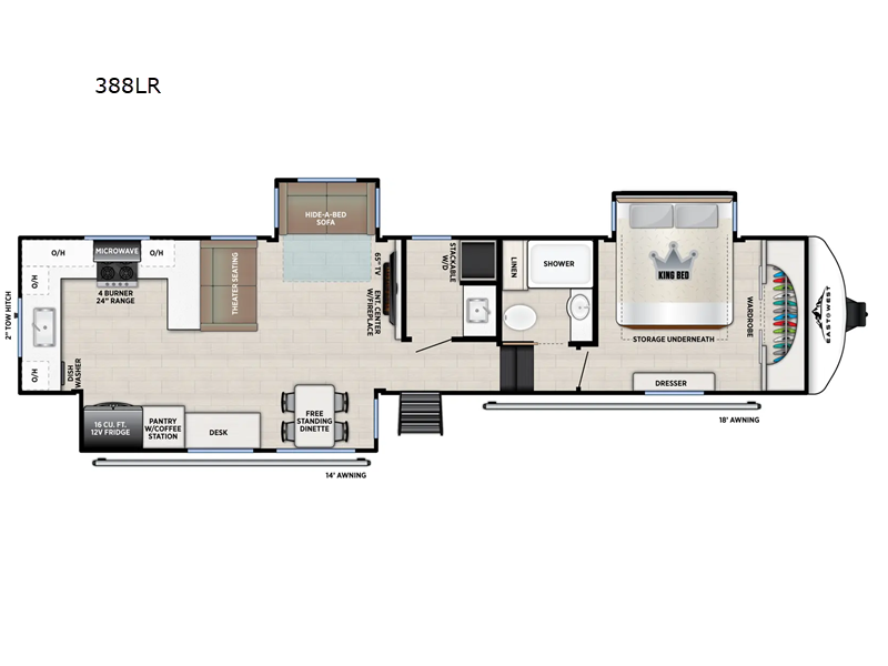 | TV Info | LR 65" TV | Awning Info | 14' and 18' Power w/LED Lights |