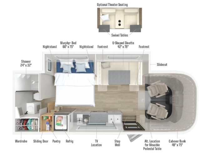 | Cooktop Burners | 2 | Shower Size | 23" x 34" |