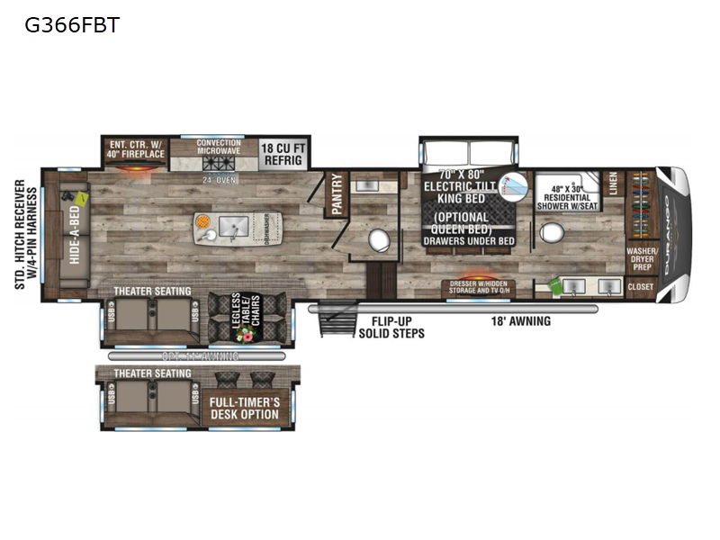 TV Info | LR 50" LED TV, BR 32" LED TV | Awning Info | 18' Power w/LED Light Strip |